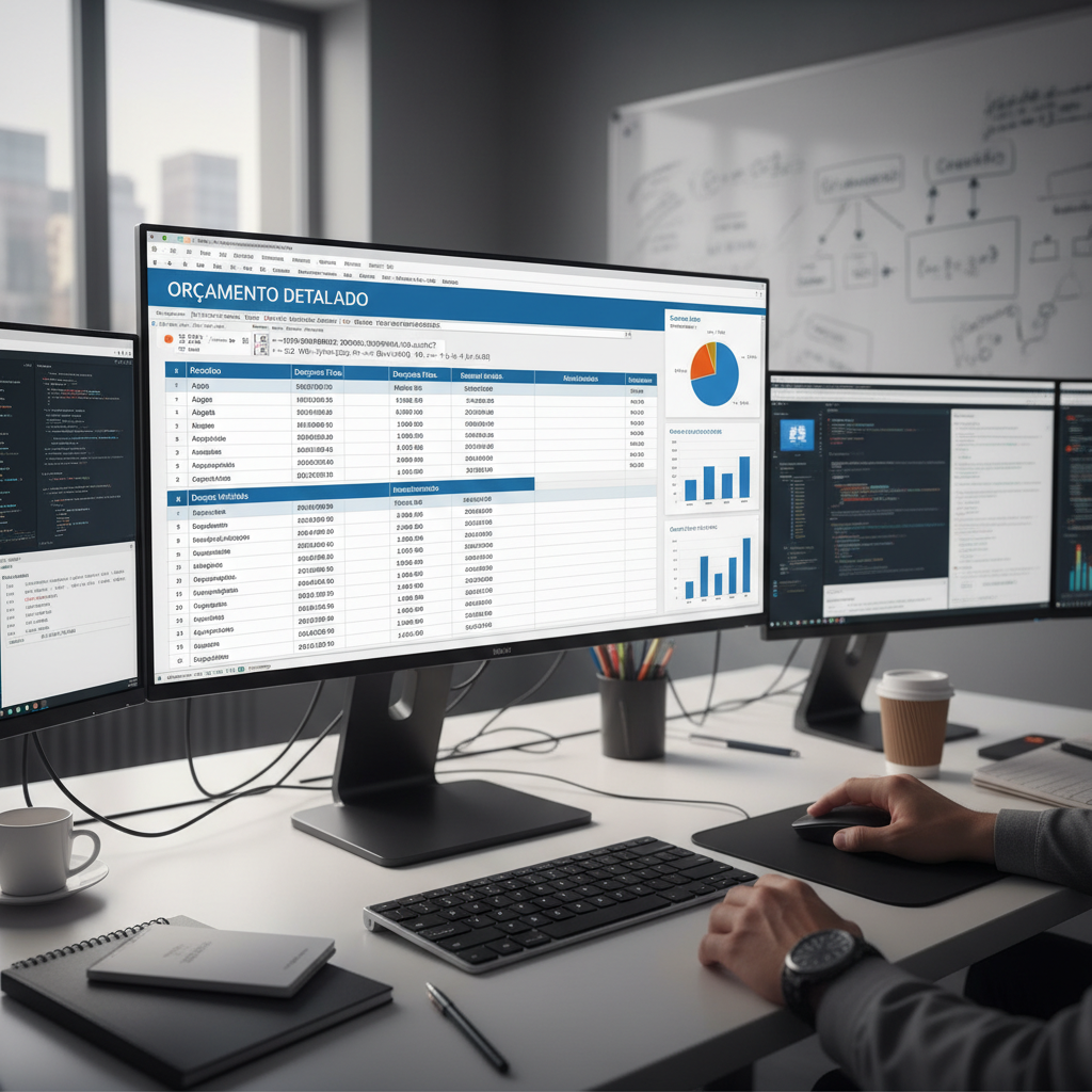 Preparação do orçamento em formato que pode ser importado diretamente para o sistema da construtora. Elimina a necessidade de digitação manual e permite acompanhar gastos reais comparados ao planejado de forma integrada.