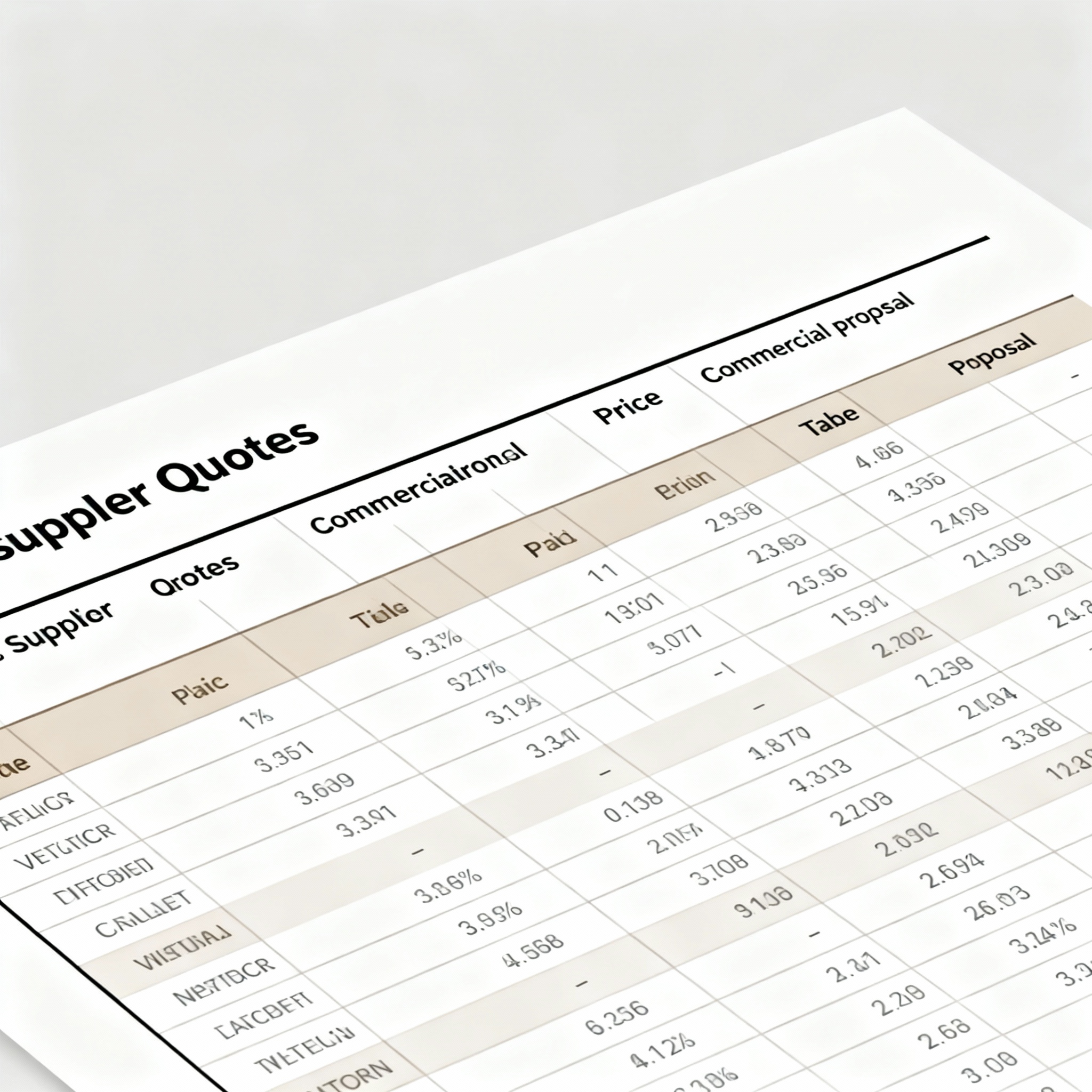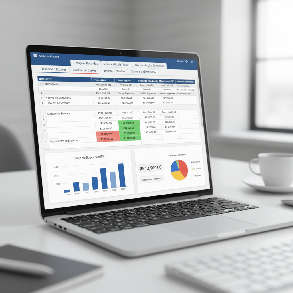 Organização de todas as cotações em uma planilha comparativa, mostrando preços e condições de cada fornecedor. Documenta as escolhas realizadas e permite justificar decisões quando necessário